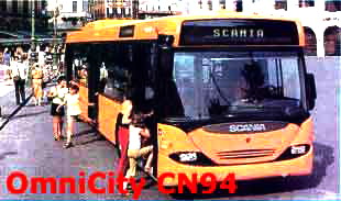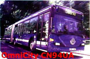 В конце 90-х годов фирма выпустила серию комплектных 12-метровых многофункциональных автобусов Omni с кузовами модульной конструкции, получивших переднюю облицовку, названную "улыбающейся". От нее вскоре пошла мода на такой оригинальный стиль оформления. Городской низкорамный 3-дверный автобус OmniCity CN94 оснащен полностью алюминиевым кузовом: его основание в виде продольной силовой балки, поперечины и каркас собраны на болтах из алюминиевых П-образных профилей, крыша и боковая облицовка тоже алюминиевые, но передняя и задняя панели стеклопластиковые. В задней части кузова поперечно с наклоном 60"назад расположены двигатели объемом 9 или 11 л мощностью 220-260 л.с. и автоматическая 4-ступенчатая коробка передач. Один из двигателей в 230 л.с. рассчитан на работу на этаноле. Автобус укомплектован всеми дисковыми тормозами, 3-кон тур, но и тормозной системой с АБС и индикатором износа накладок, гидравлическим тормозом-замедлителем, установкой микроклимата в кабине водителя. Пригородный автобус OmniLmk отличается от городского только двигателем, установленным сзади продольно с углом наклона 60:.