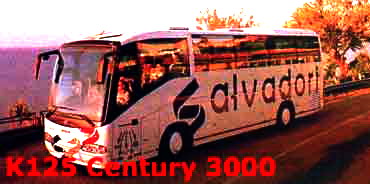 Давняя кооперация с испанской кузовной фирмой Irizar привела к созданию комплектного автобуса Scania Century 3000, смонтированного на шасси К124 (4x2 или 6х2| и соответствующего всем нормам Западной Европы и США Его дизайн сочетает аэродинамичную форму, свойственную фирме Irizat. с "фирменным" стилем "улыбка", созданном на Scania. Автобус с числом посадочным мест до 57 предлагается в нескольких вариантах длины - от 10.7 до 15 м, с габаритной шириной 2550 мм и высотой 3700-3900 мм. Внутренняя высота салона -2050 мм. Кузов оснащен периферийным поясом безопасности, а его наиболее уязвимые нижние элементы выполнены из нержавеющей стали. В задней части шасси продольно размещаются вертикальные двигатели рабочим объемам 9. 11 и 12 л мощностью от 300 до 420 л.с. в блоке с механической 8-сту-пенчатой коробкой передач ZF. Шасси оборудовано всеми дисковыми тормозами, индивидуальной пневматической подвеской каждого переднего колеса, гидроприводом для управления неведущими колесами третьей оси.